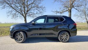 Bočný profil je typický pre rámové SUV: vysoká stavba, veľké presklené plochy, dlhý rázvor a proporcie, ktoré viac sľubujú stabilitu a priestor než šport. A v 5-miestnej verzii pôsobí Rexton ako auto pripravené na výlet, dovolenku aj prácu – a presne to je jeho pointa.