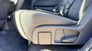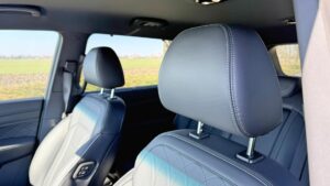 Zadné sedadlá sú v Rextone o komforte a priestore. Vďaka veľkému rázvoru je miesta na nohy dosť, a vysoká karoséria pomáha aj s priestorom nad hlavou – čo oceníte pri dospelých pasažieroch aj pri detských sedačkách. Máme tu USB-C porty, lakťovú opierku a tiež sklápanie operadiel v širokom rozsahu.