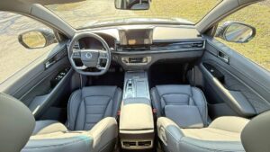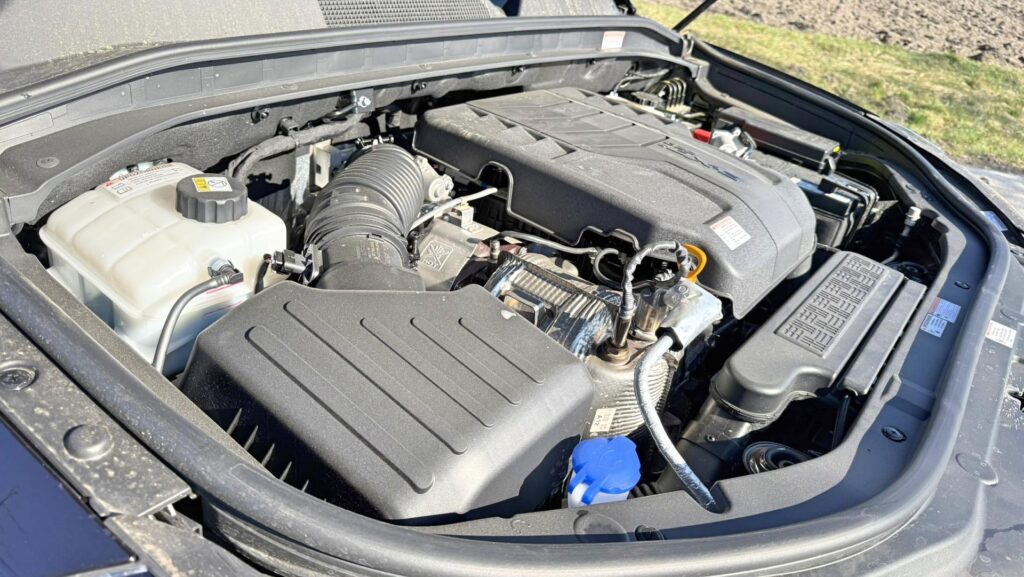 Rozmerovo sa bavíme o kategórii, kde sa už nehrá na kompromisy: dĺžka 4 850 mm, šírka 1 960 mm, výška 1 825 mm a rázvor 2 865 mm. To sa prejaví na priestore v kabíne aj na diaľnici – auto pôsobí robustne a má prirodzene vyššiu „plavnosť“ typickú pre veľké SUV.