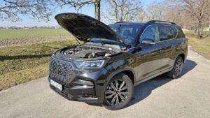 V redakcii sme testovali 5-miestnu verziu Rexton G4 2.2 e-XDI vo výbave Premium doplnenú o BLACK paket, teda konfiguráciu, ktorá cieli na zákazníka hľadajúceho eleganciu a robustnosť na ťažkú prácu v jednom balení. Z pohľadu použitia je to typické auto pre ľudí, ktorí ťahajú príves, vozia bicykle/čln/karavan a zároveň potrebujú veľký, stabilný a bezpečný rodinný koráb.