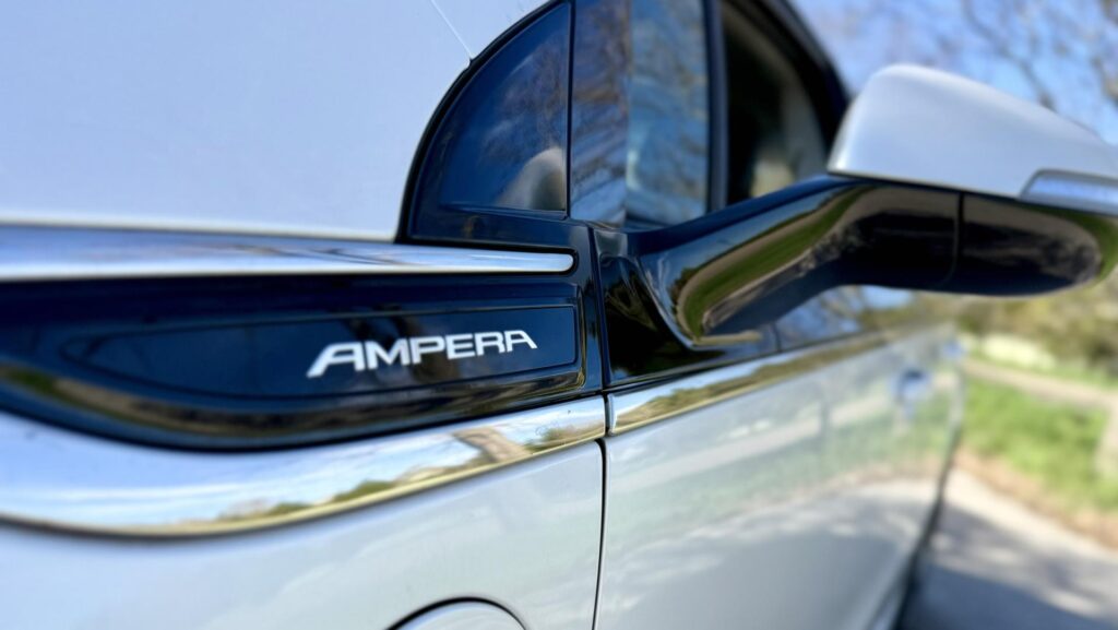 Ampera teda nevyrástla na nostalgii, nesnažila sa evokovať minulosť a nehrala sa ani na futuristický koncept. Jej línie pôsobia aj po rokoch relatívne moderne, len ich dnes vnímame cez filter doby. Predná časť s charakteristickými boomerangovými svetlometmi, ktoré plynulo prechádzajú do hmlových svetiel, dodávajú vozidlu dynamický vzhľad.