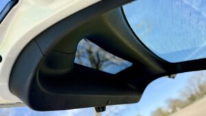 Sedadlá pôsobia, a aj sú veľmi pohodlné a tie predné ponúkajú celkom slušný priestor. Výhľad dopredu je zasa trochu horší vďaka masívnemu A-stĺpiku, ktorý je navyše skosený pod naozaj ostrým uhlom. Na nejednej križovatke treba trochu viac rozhliadania, no dá sa na to zvyknúť. Opäť tu víťazila aerodynamika nad funkčnosťou.