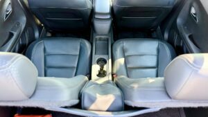 Komfort jazdy tu podporuje aj výkonná elektrická klimatizácia a celkovo výborné odhlučnenie v elektrickom režime. Praktická stránka už mierne zaostáva za dnešnými štandardmi. Kufor je naozaj plytký a malý, pretože ho obmedzuje dobová technika. Zadné sedadlá sú len dve a stredový tunel jasne ukazuje, kto tu velí.