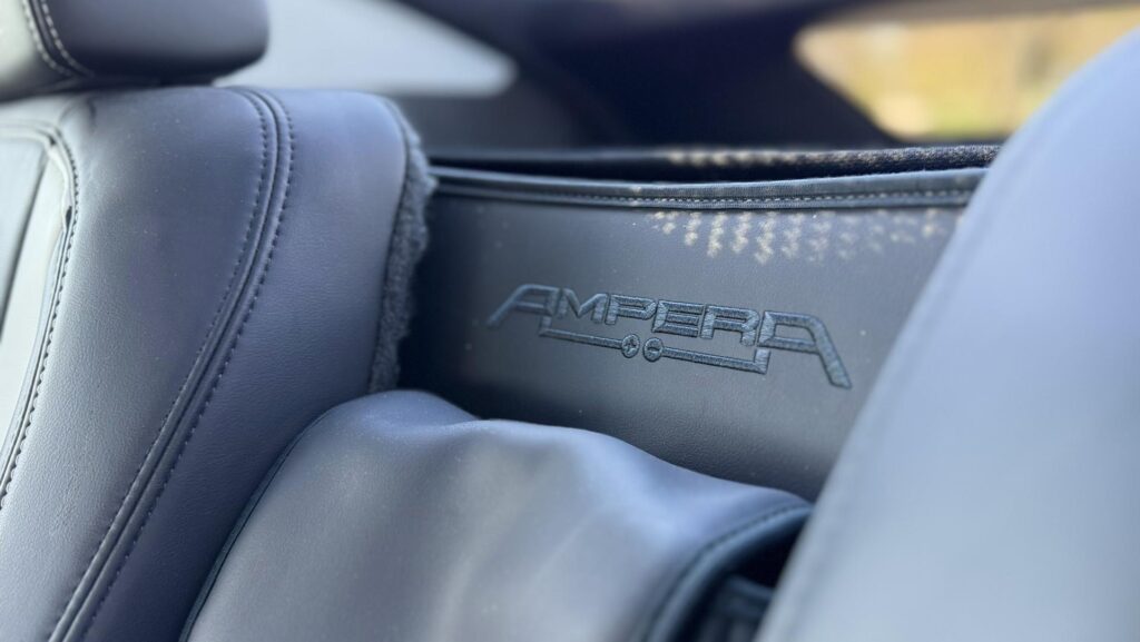 Keď si sadneme do Ampery, hneď cítime, že ide oauto z prelomu dvoch svetov. Na jednej strane tu nájdešme veľa lesklých plôch (našťastie nie v klavírnej čiernej… tá „móda“ ešte len mala prísť), dotykových tlačidiel a displejov, ktoré mali pred viac než dekádou ukazovať technologický náskok.
