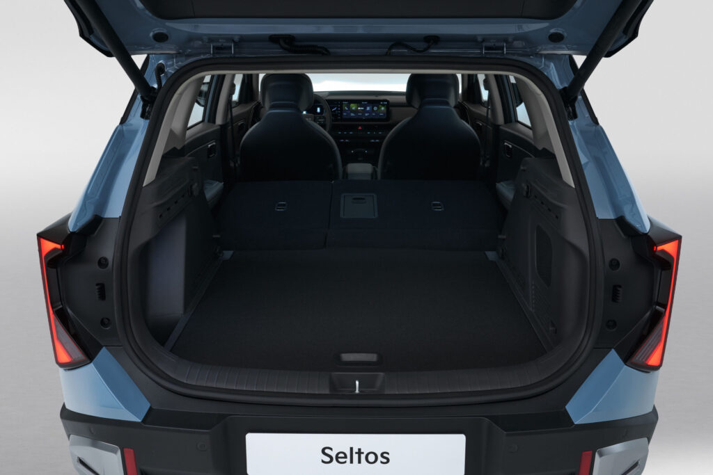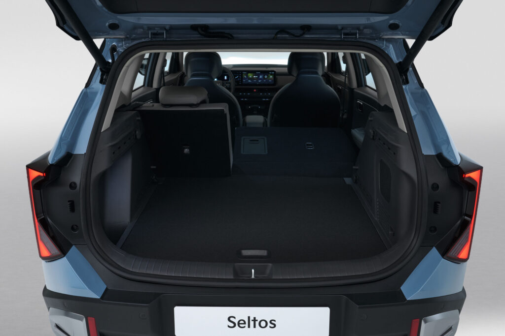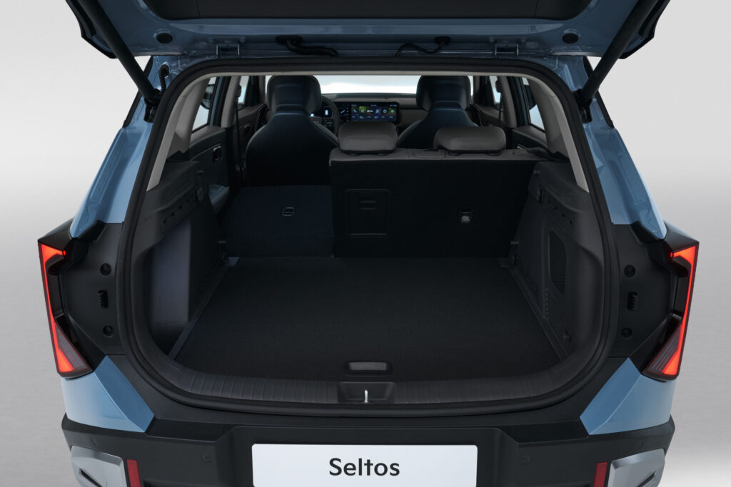 S dĺžkou 4 430 mm, šírkou 1 830 mm a rázvorom 2 590 mm ponúka Seltos nadštandardný priestor v kabíne. Cestujúci majú dostatok miesta na nohy aj hlavu a batožinový priestor s objemom 536 litrov patrí medzi najväčšie v triede. Praktickosť zvyšuje variabilné usporiadanie interiéru vrátane nastaviteľných zadných sedadiel a dvojitej podlahy kufra.