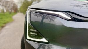 Veľmi dobre tu funguje aj svetelná technika. Denné svietenie má výrazný podpis a v kombinácii s dynamickými smerovkami pôsobí predok auta najmä večer veľmi efektne. Nie prvoplánovo, ale moderne a hodnotne. Aj to je pri dnešných autách dôležité. Svetlá už totiž dávno neslúžia len na to, aby bolo vidieť na cestu. V mnohých prípadoch vytvárajú veľkú časť identity celého auta. KIA EV5 to má vpredu zvládnuté veľmi dobre. Možno by si zaslúžila Matrix svetlomety, no aj tie klasické FullLED svietia celkom dobre.