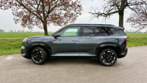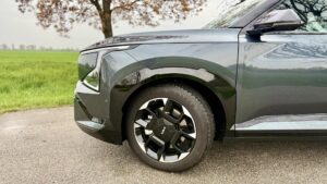 Pri pohľade zboku sa podobnosť so Sportage v podstate končí. A úprimne, je to dobre. Profil ukazuje, že KIA EV5 chce pôsobiť ako samostatný model s vlastným charakterom, nie ako elektrická odbočka známeho SUV. Bočná silueta je pevná, hranatejšia a celkovo robustnejšia. Auto nepôsobí športovo v tom klasickom zmysle slova, ale skôr dôveryhodne a dospelo. Je z neho cítiť, že prioritou nebola hra na kupé-SUV, ale priestor, praktickosť a seriózny postoj na ceste.