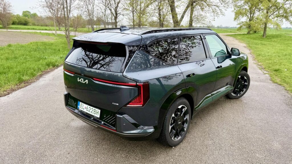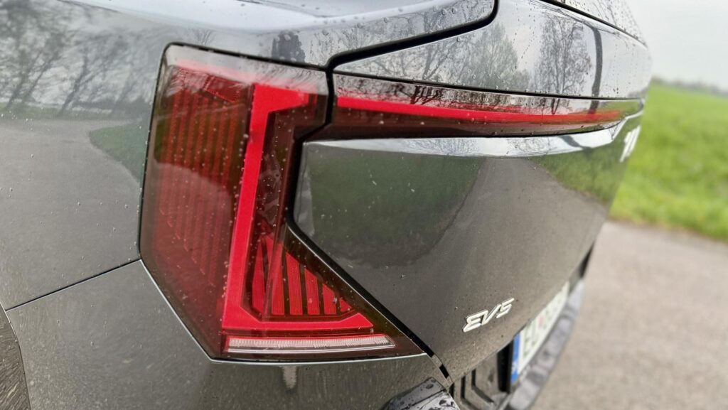 Zadná časť patrí podľa mňa k najsilnejším partiám celej karosérie. KIA EV5 tu pôsobí moderne, široko a sebavedomo, no stále si drží istú vizuálnu čistotu. Koncové LED svetlá majú zaujímavý tvar a veľmi pekne dotvárajú šírku auta. Nejde len o obyčajný svetelný pás alebo o povinný moderný detail. Zadné svetlá tu reálne vytvárajú charakter a robia z EV5 auto, ktoré si človek večer alebo v hustej premávke zapamätá aj pri pohľade zozadu.