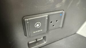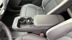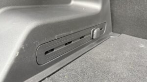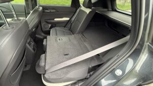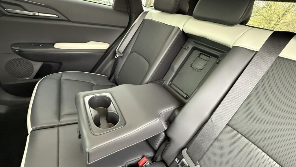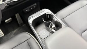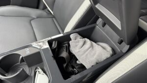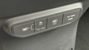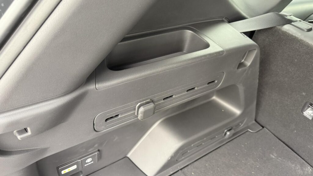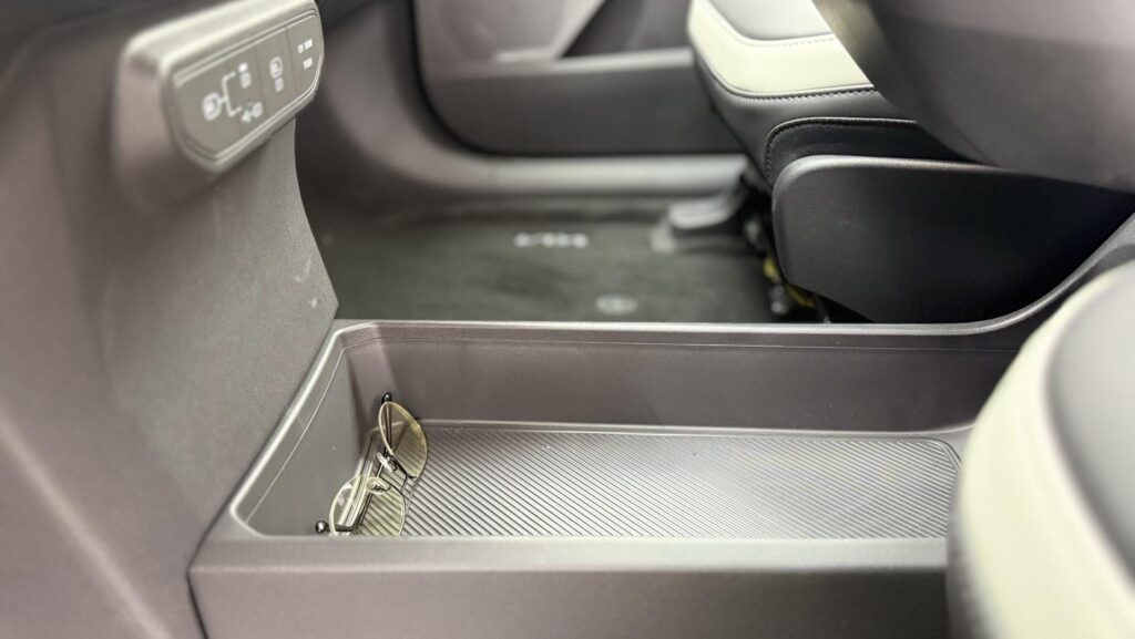 Veľké plus si zaslúžia aj samotné zadné sedadlá. Sú polohovateľné, takže posádka vzadu nemusí len pasívne sedieť v jednej fixnej pozícii ako v lacnejšom kompaktnom SUV. Pri dlhších trasách je to citeľný rozdiel. Praktickosť podporuje aj prievlak na lyže alebo dlhšie predmety, takže EV5 myslí aj na situácie, keď netreba skladať polovicu interiéru kvôli pár dlhším veciam. Plus tu nájdeme zaujímavo riešenú zásuvku s veľkým úložným priestorom v spodnej časti stredovej konzole.