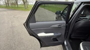 Zadná časť interiéru veľmi rýchlo ukáže, či ide len o dizajnové SUV pre vodiča, alebo o skutočne rodinné auto. A EV5-ka v tomto smere obstála veľmi dobre. Už po otvorení zadných dverí pôsobí priestor hodnotne a premyslene. Obklady dverí sú aj na dotyk kvalitné, nepôsobia lacno a celé zadné sedenie má príjemne dospelú atmosféru. Pomáha tomu aj ambientné osvetlenie, ktoré večer dotvára moderný dojem z interiéru a zároveň robí kabínu útulnejšou.