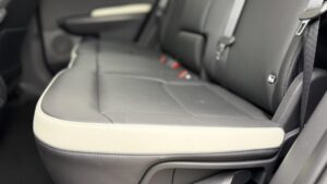 Z pohľadu priestoru je zadná časť kabíny jedným z najsilnejších argumentov celej EV5-ky. Miesta na nohy je tu naozaj dosť a rovnako dobre vychádza aj priestor nad hlavou. Práve to potvrdzuje, že KIA EV5 nie je len módny crossover s nafúknutou karosériou, ale skutočné rodinné SUV. Ani vyšší pasažieri tu nepôsobia stiesnene a pri bežnom rodinnom použití si viem vzadu úplne bez problémov predstaviť aj dve detské sedačky plus ďalšieho cestujúceho. Výhodou je aj úplne rovná podlaha a celkovo vzdušnejší pocit z priestoru.