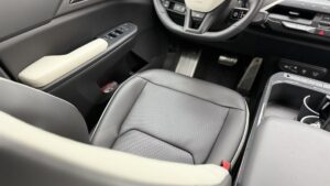 Vpredu sa veľmi rýchlo ukáže, či si výrobca dal záležať len na efektnom vizuáli, alebo aj na tom, ako sa v aute bude reálne sedieť a žiť. A tu musím povedať, že KIA EV5 vo výbave GT-Line trafila veľmi správny pomer medzi komfortom, ergonómiou a pocitom vyššej triedy. Predné sedadlá patria k tým veciam, ktoré si človek všimne okamžite. Sú pohodlné, dobre tvarované a už po krátkej jazde dávajú najavo, že ich niekto nenavrhoval len pre showroom, ale aj pre skutočný presun na stovky kilometrov.