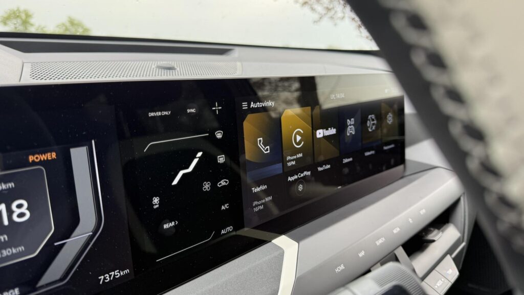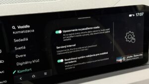 Menší displej klimatizácie má však jednu zvláštnosť. V určitých polohách volantu zostáva trochu skrytý, takže vodič naň nevidí vždy ideálne. Nie je to zásadný problém, skôr detail, ktorý si človek všimne pri každodennom jazdení. Dobré je, že dôležité funkcie klímy zostali podporené aj fyzickými ovládačmi, takže sa z tejto drobnej nevýhody nestáva ergonomická katastrofa. Práve toto je podľa mňa správny kompromis medzi moderným dizajnom a normálnou použiteľnosťou.