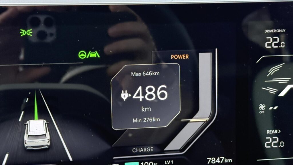 Z praktického pohľadu ma zaujali aj aktívne klapky v prednej časti. Nie je to prvok, ktorý by si každý všimol hneď pri prvom obídení auta, ale presne takéto detaily rozhodujú o tom, či má moderný elektromobil hlavu a pätu. Keď sa nemusia chladiť jednotlivé komponenty naplno, klapky pomáhajú aerodynamike a tým aj efektivite. Pri SUV s koeficientom odporu vzduchu 0,30 to nie je zanedbateľná maličkosť, ale súčasť širšej technickej logiky celého auta.
